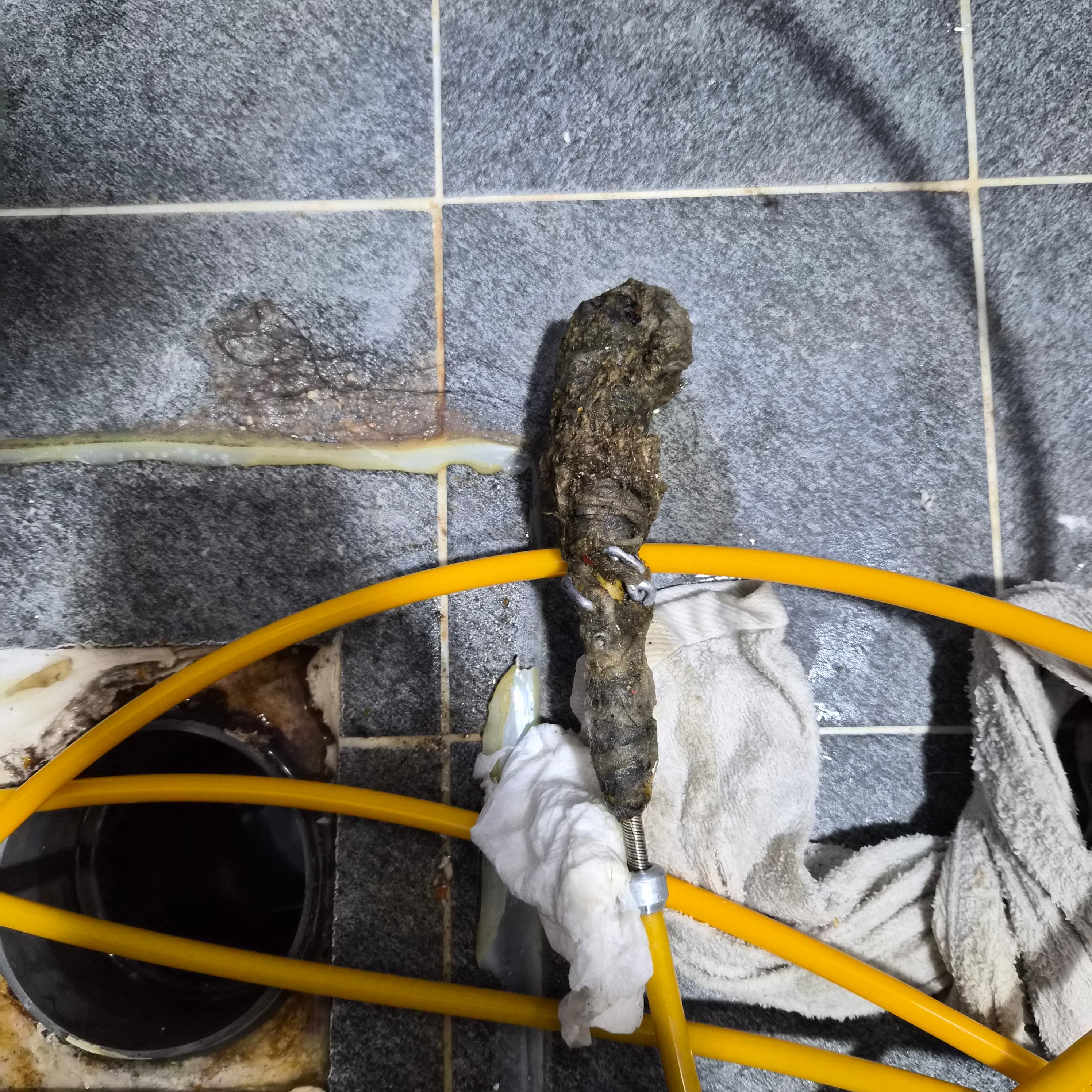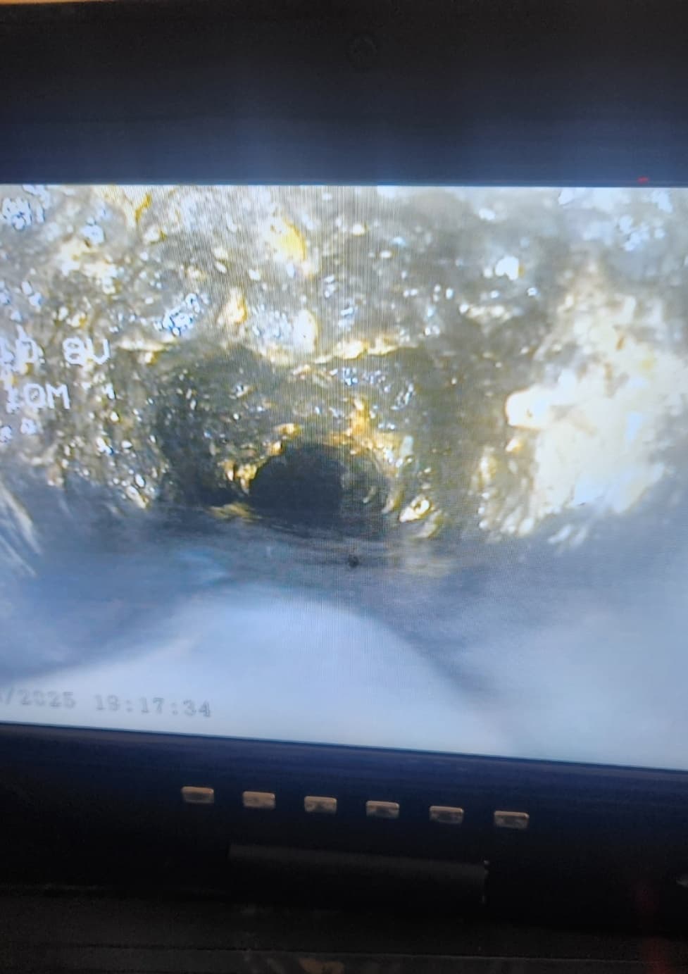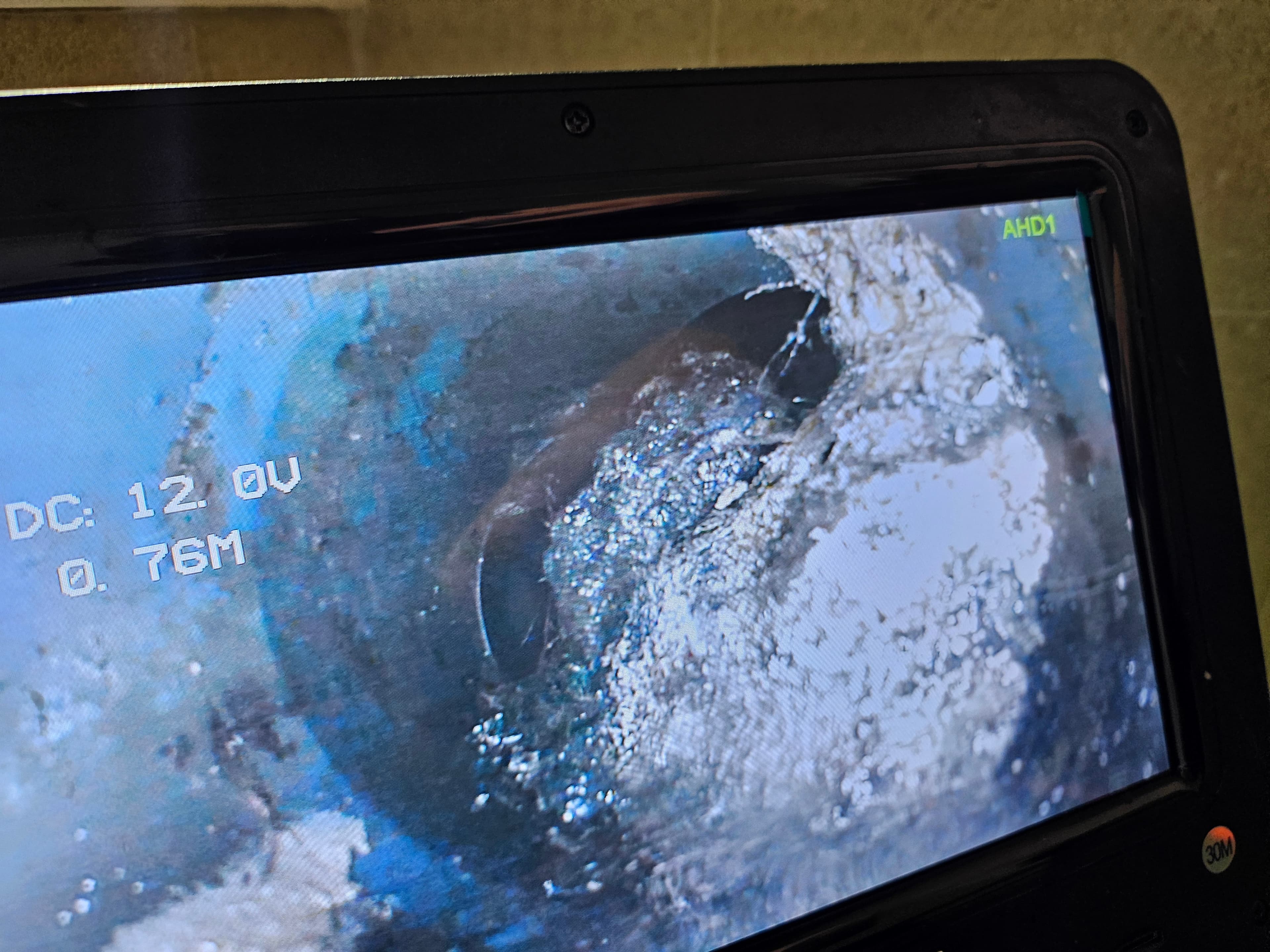 내시경 카메라로 배관 속 물티슈 덩어리가 막힘의 원인임을 확인