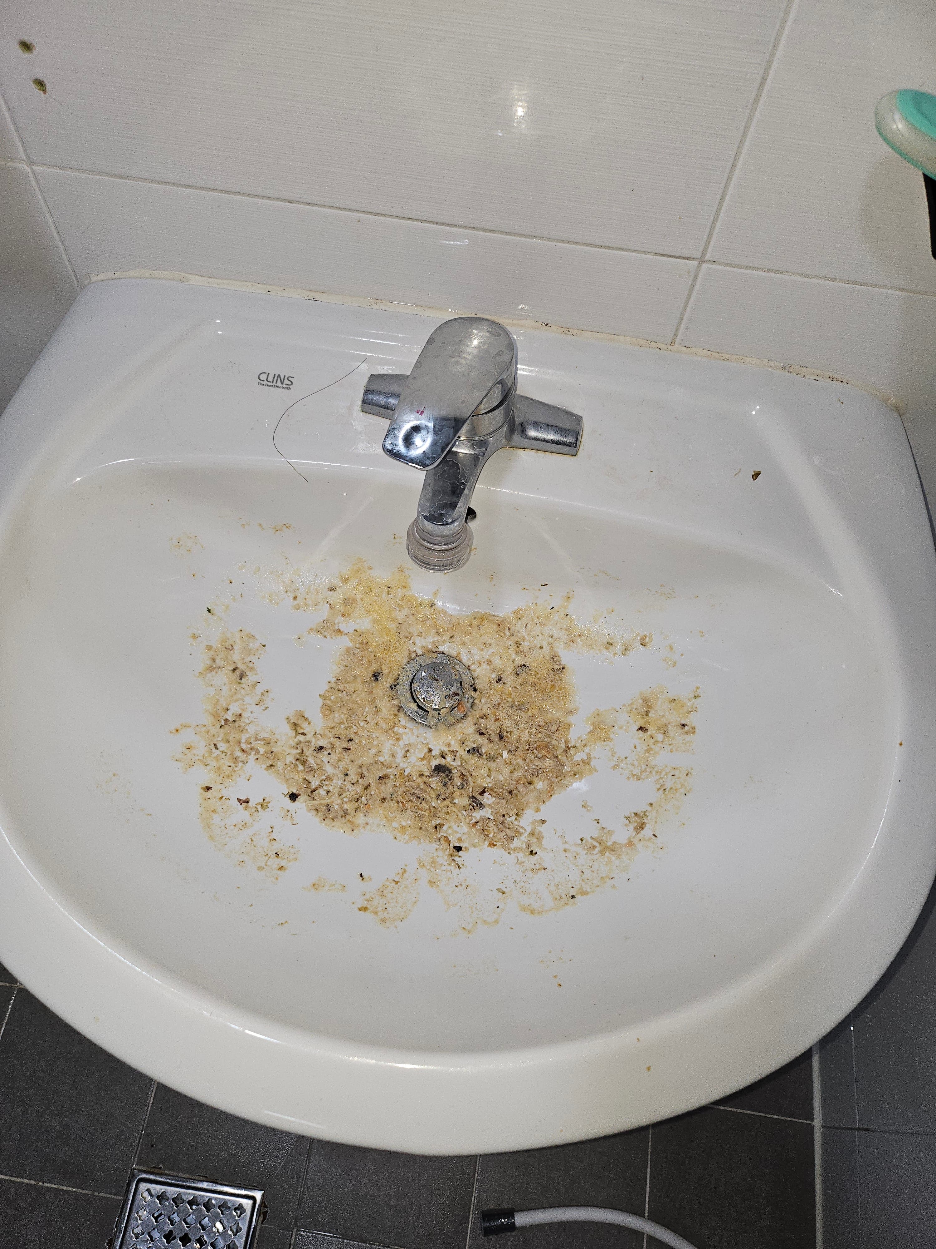 변기를 분리하고 오수관 내부 이물질을 직접 제거