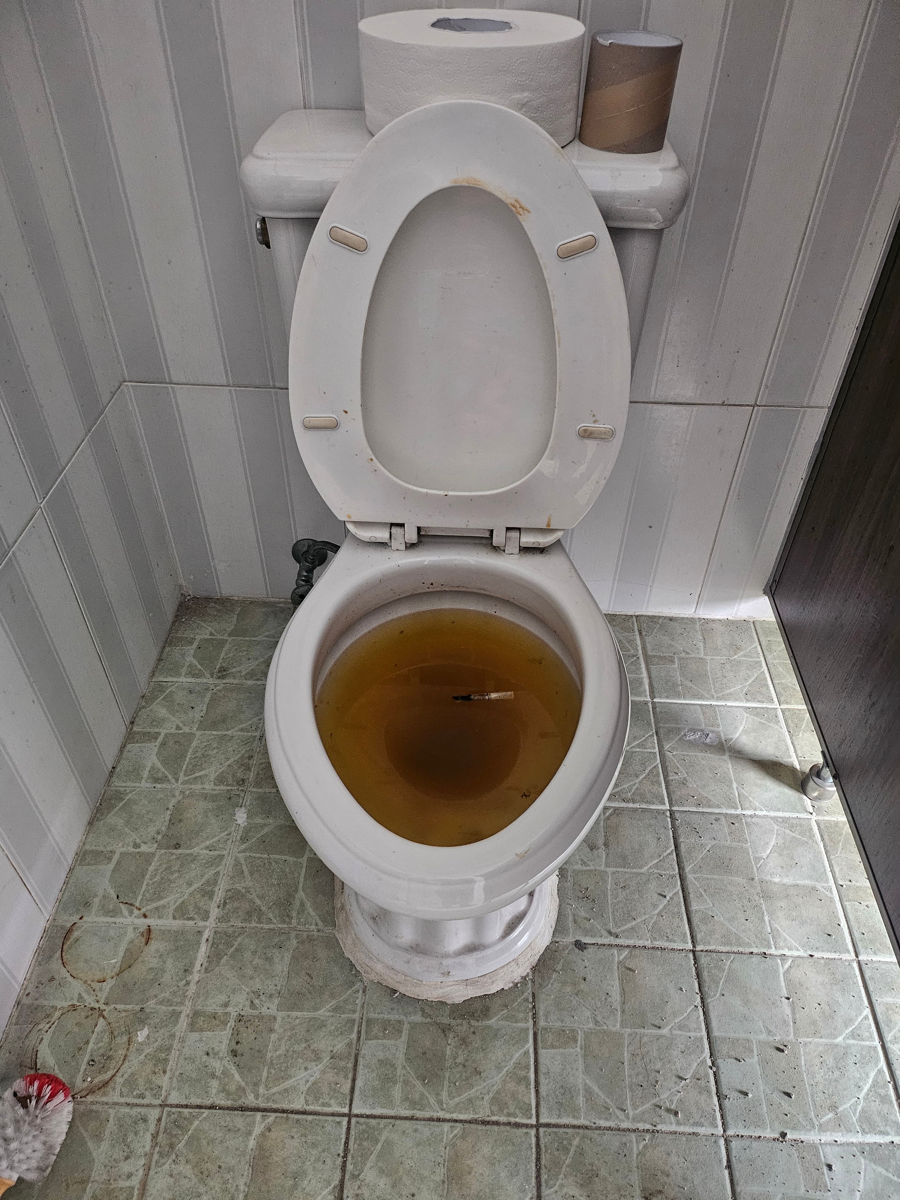 물이 넘치기 직전의 변기, 전문 스네이크 장비로 즉시 뚫음